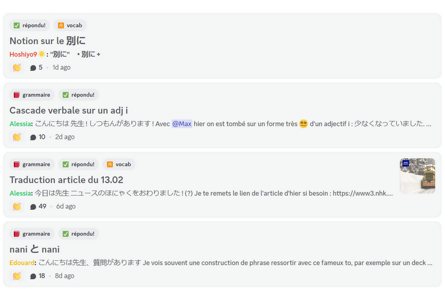 JLPT N1 depuis 6 ans, j'enseigne à des élèves en groupes restreints, et je sais m'adapter à leur niveau, à leurs difficultés, et à leurs objectifs spécifiques.
